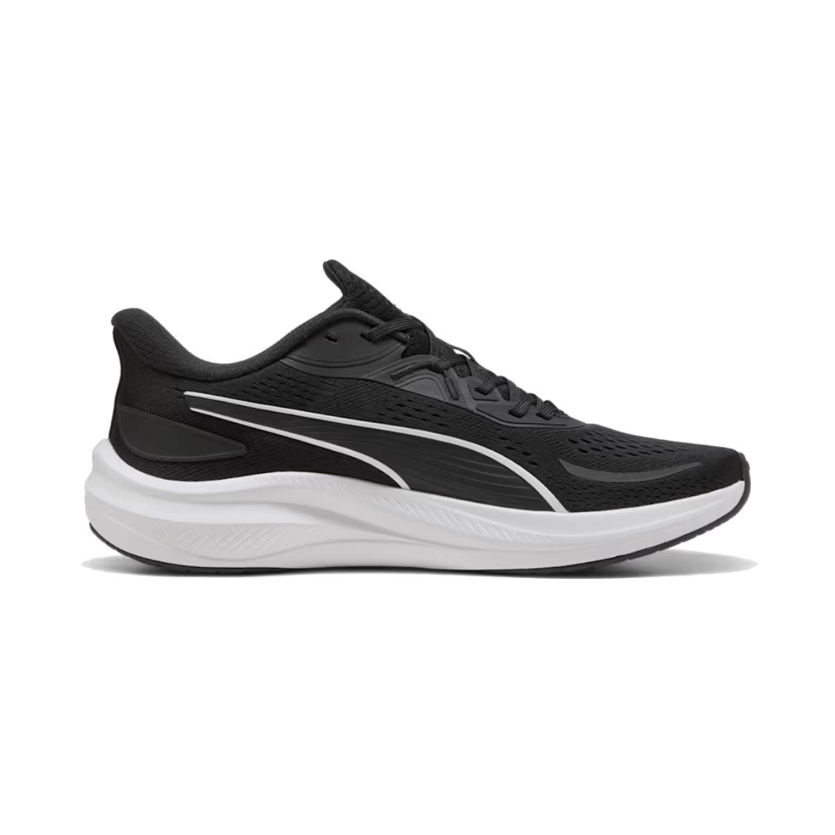 Prepárate para dominar el asfalto con las Puma Skyrocket Lite 2. En su versión más potente y equilibrada de negro con detalles en blanco, estas zapatillas son la herramienta definitiva para quienes buscan un rendimiento serio sin sacrificar el estilo. Diseñadas para devorar kilómetros, combinan una estética técnica con las innovaciones de amortiguación más punteras de Puma.